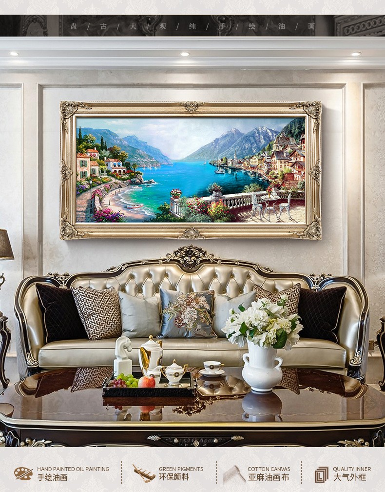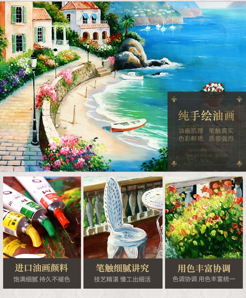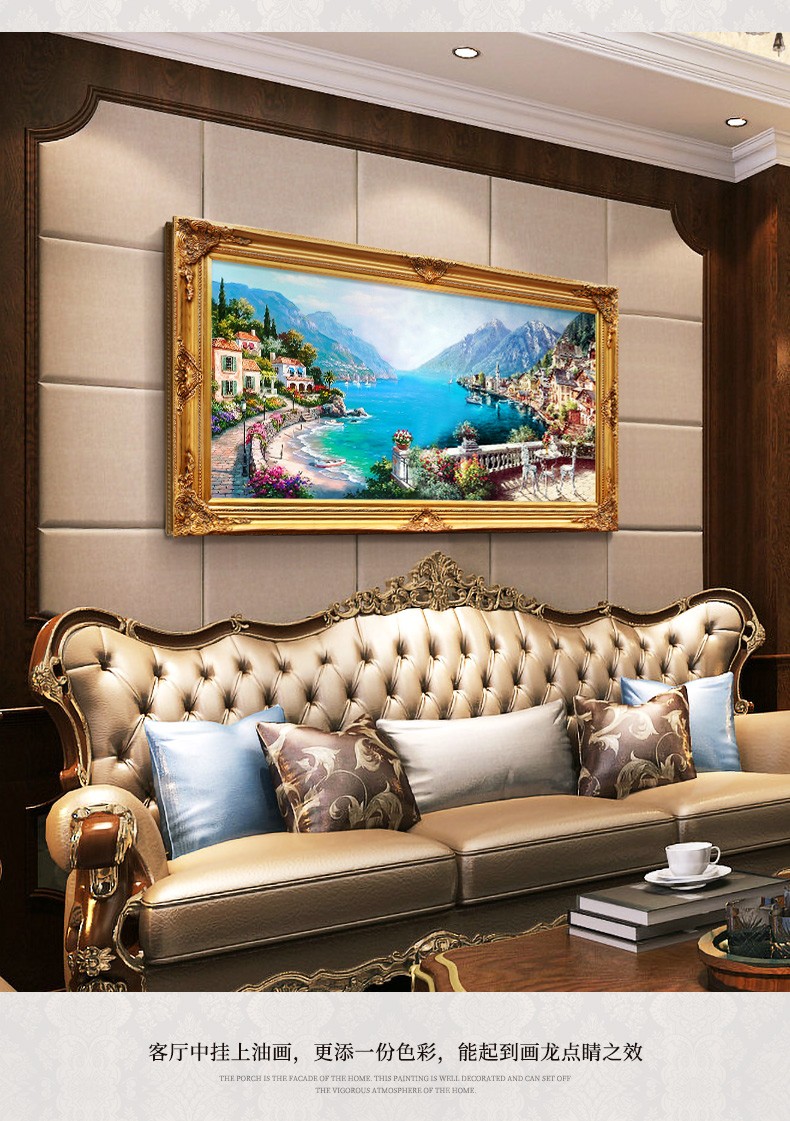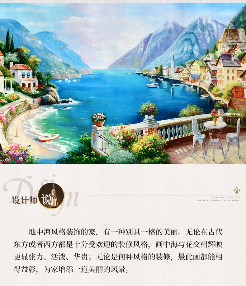 歐式客廳手繪油畫地中海風景餐廳掛畫山水壁畫沙發背景墻畫裝飾畫