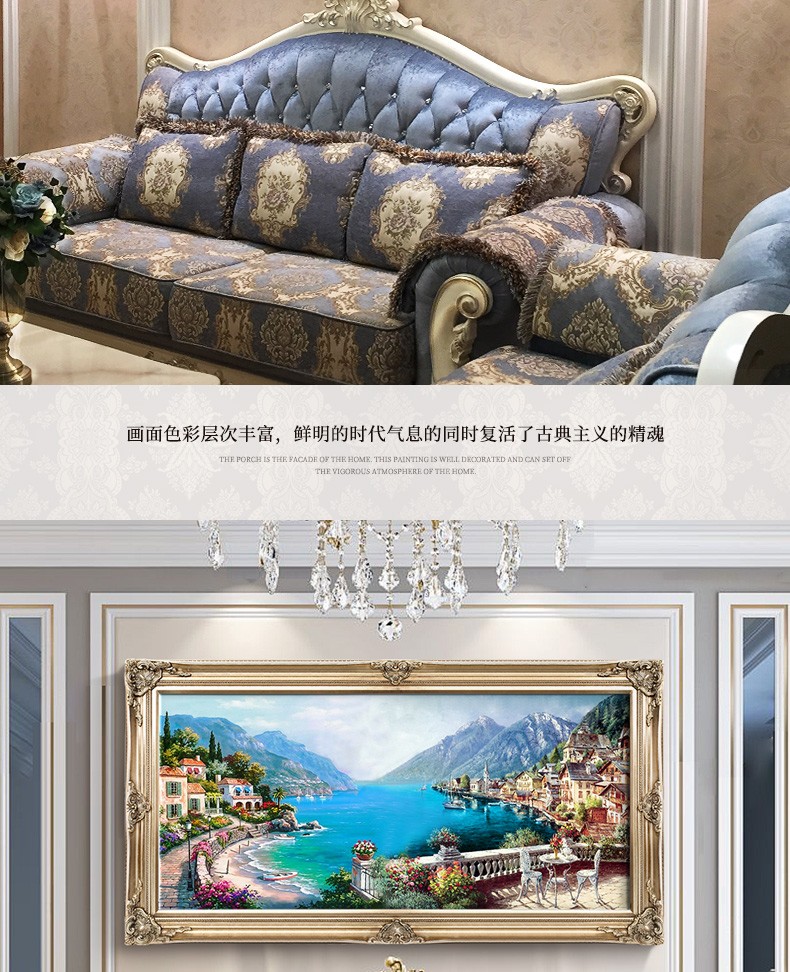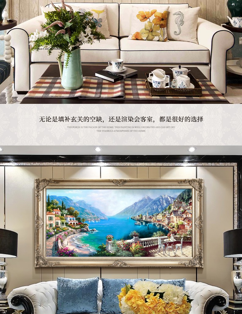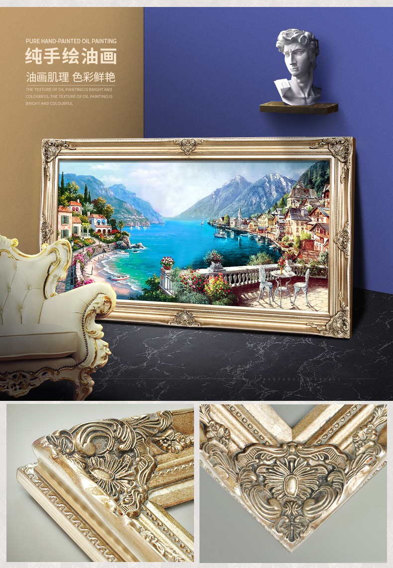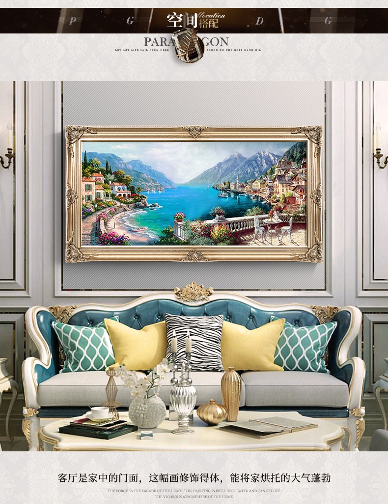 歐式客廳手繪油畫地中海風景餐廳掛畫山水壁畫沙發背景墻畫裝飾畫