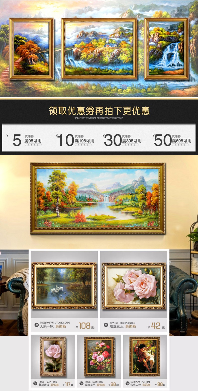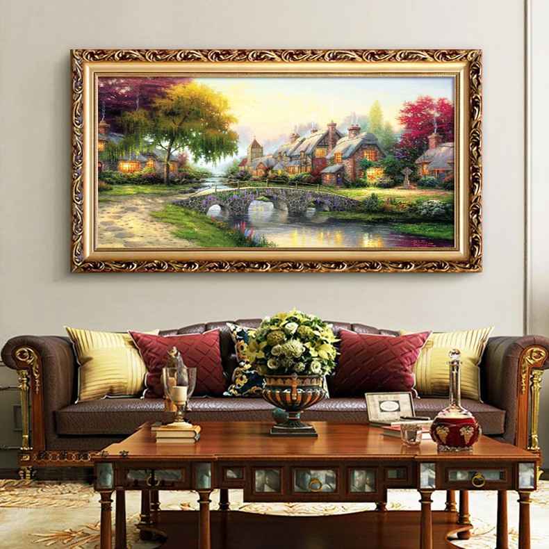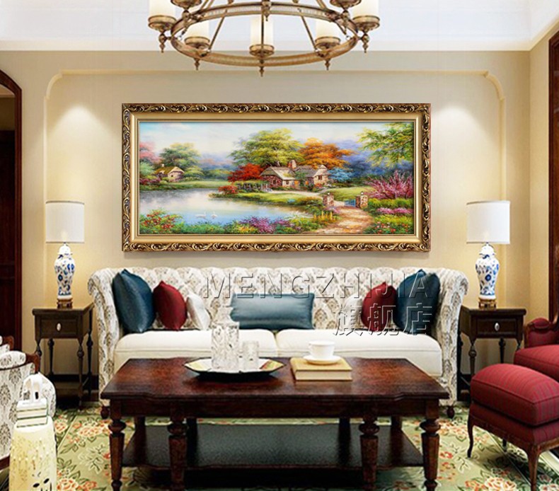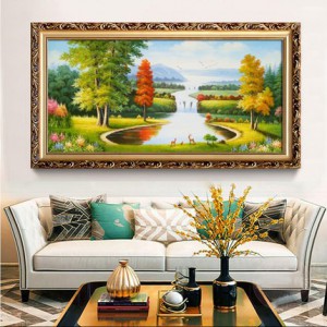 聚寶盆山水畫田園風(fēng)景掛畫歐式客廳裝飾畫沙發(fā)背景墻油畫招財壁畫